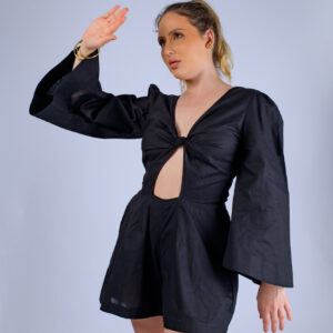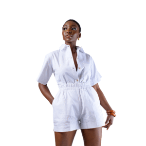 KShs 13,650.00Made in Kenya. Our Anga Romper is a perfect summer style featuring: Light weight cotton fabrication Mini length Puff sleeve detail Cut-out tie detail Zipper… -