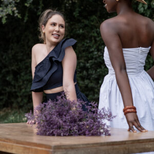 KShs 13,200.00Made in Kenya. Our Wema Skirt Set is a perfect summer style featuring: Breathable cotton fabrication Midi skirt length with pockets Ruffled self-tie top Please… -