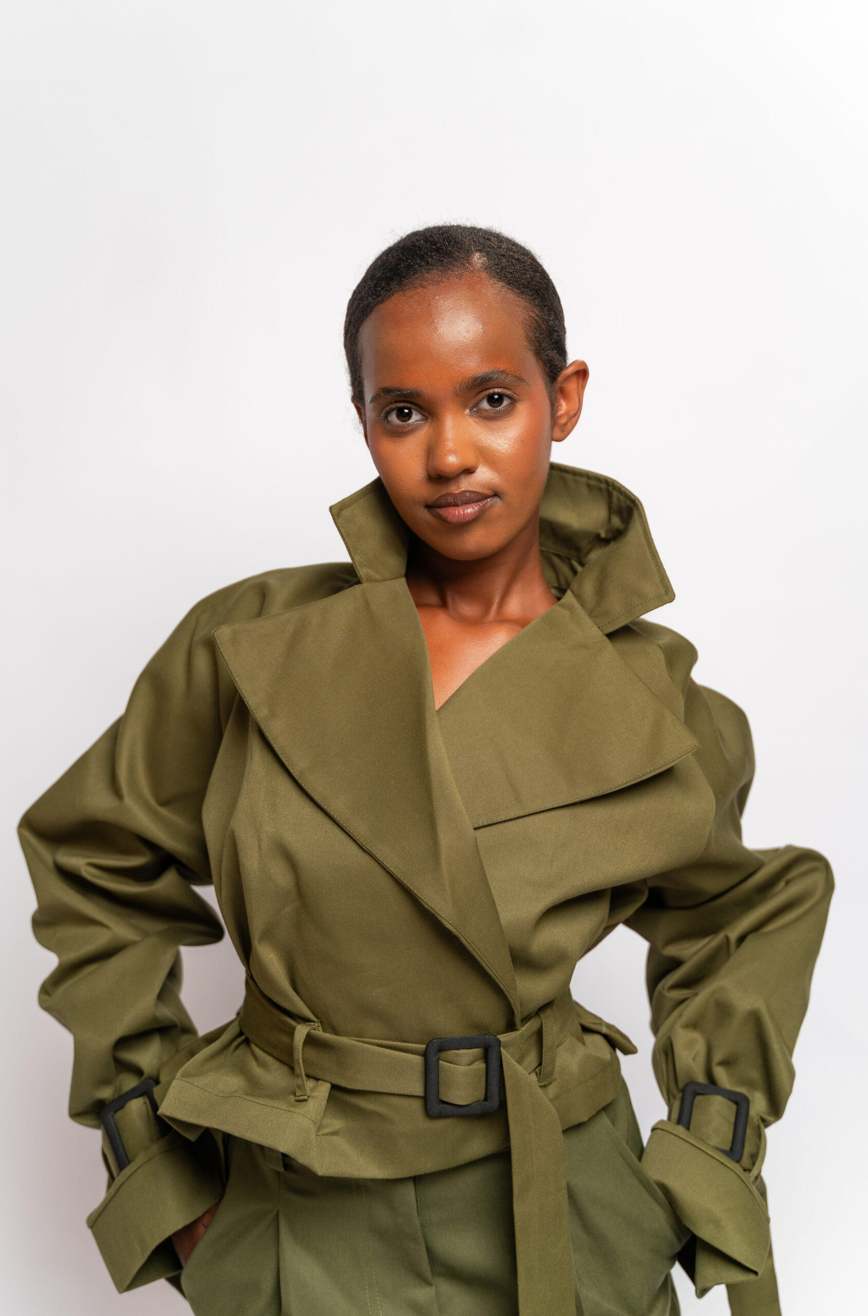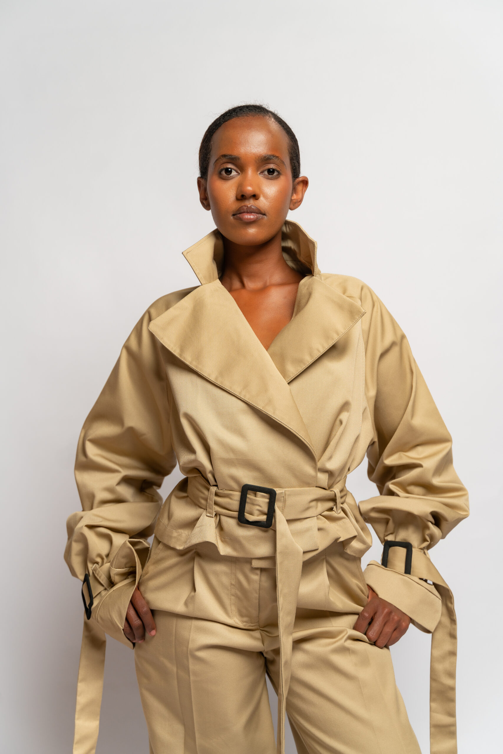 • Long sleeves with buckle details